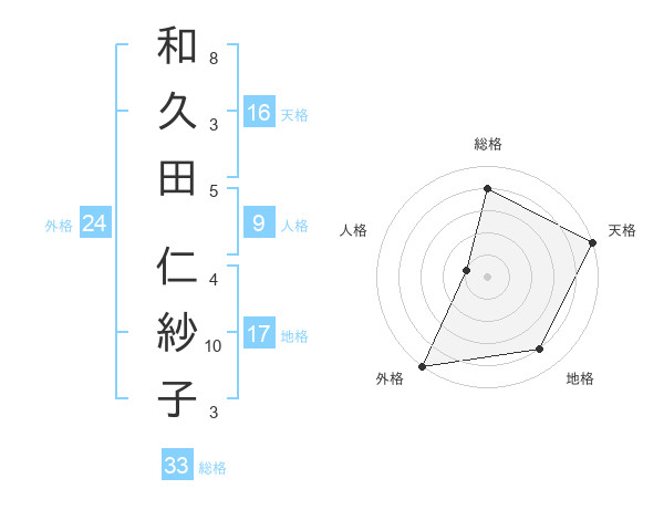 和久田 仁紗子さんの天格は16画の5点!