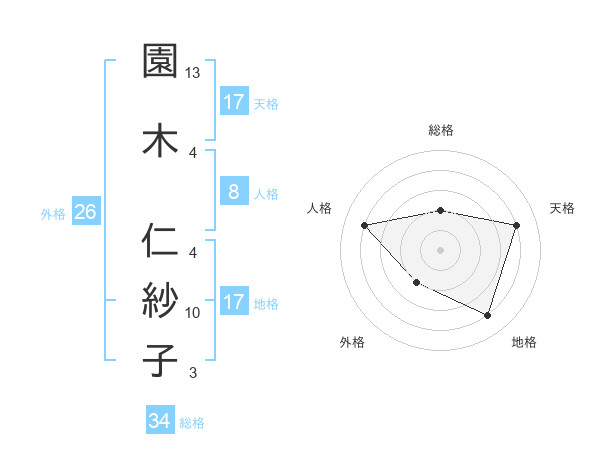 園木 仁紗子さんを姓名の画数から五運を鑑定