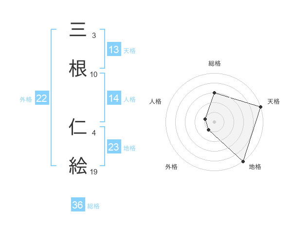 三根 仁絵さんを姓名の画数から五運を鑑定