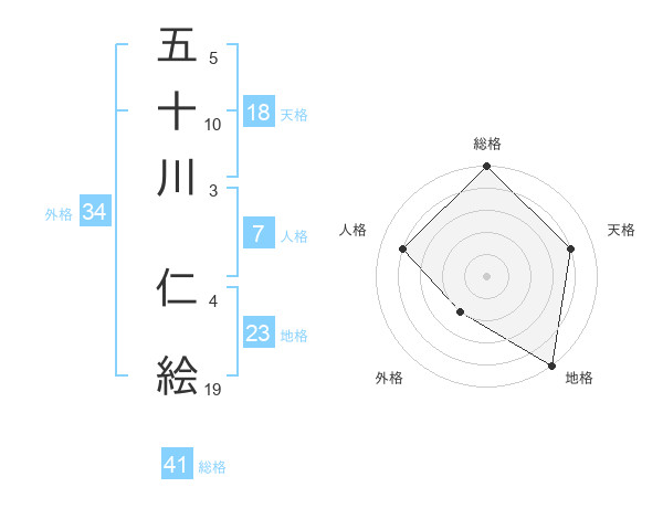 五十川 仁絵さんを姓名の画数から五運を鑑定