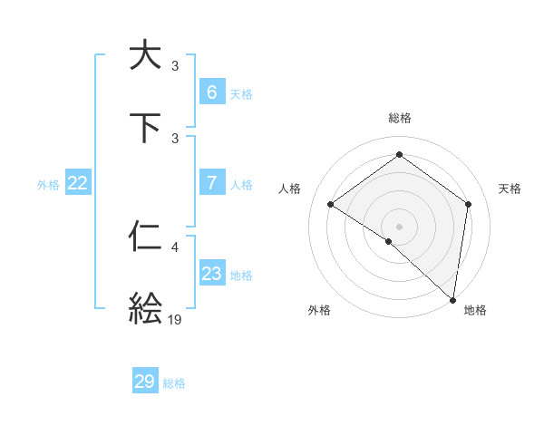 大下 仁絵さんの総格は29画の4点!