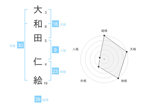 大和田 仁絵さんを姓名の画数から五運を鑑定