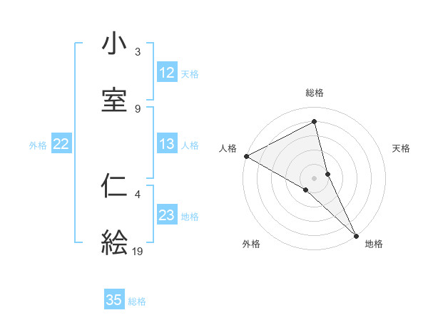 小室 仁絵さんを姓名の画数から五運を鑑定
