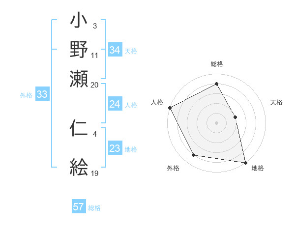 小野瀬 仁絵さんを姓名の画数から五運を鑑定
