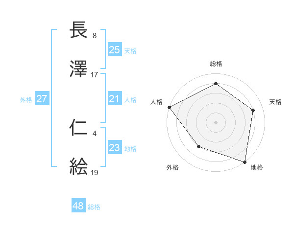 長澤 仁絵さんを姓名の画数から五運を鑑定