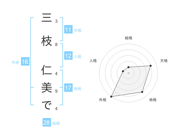 三枝 仁美でさんの天格は11画の4点!