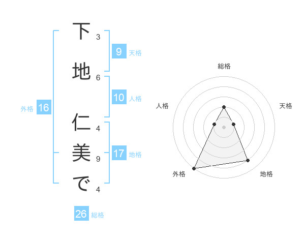 下地 仁美でさんを姓名の画数から五運を鑑定