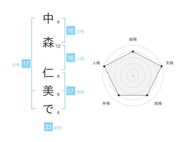 中森 仁美でさんの天格は16画の5点!