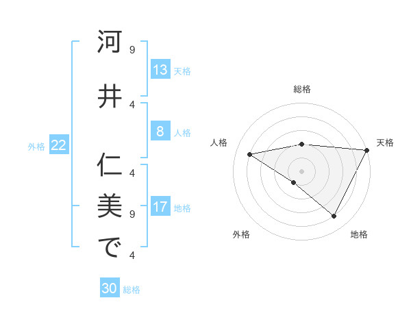 河井 仁美でさんを姓名の画数から五運を鑑定