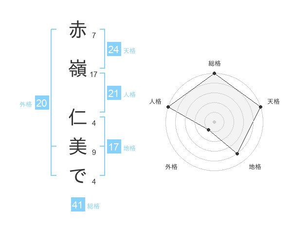 赤嶺 仁美でさんの天格は24画の5点!