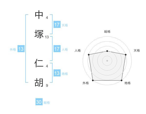 中塚 仁胡さんを姓名の画数から五運を鑑定