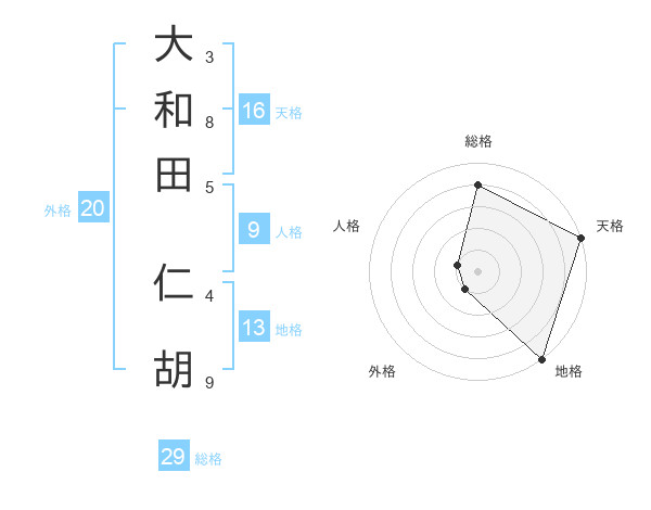 大和田 仁胡さんの総格は29画の4点!