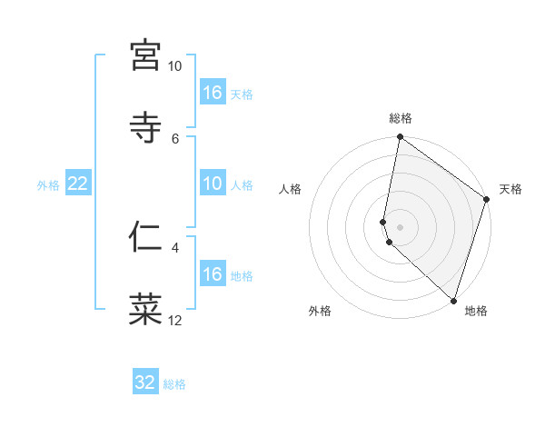 宮寺 仁菜さんを姓名の画数から五運を鑑定