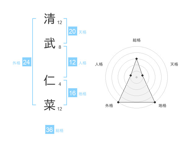 清武 仁菜さんの外格は24画の5点!