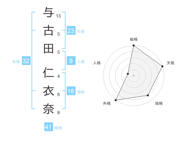 与古田 仁衣奈さんの天格は23画の5点!