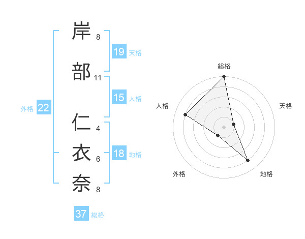岸部 仁衣奈さんを姓名の画数から五運を鑑定