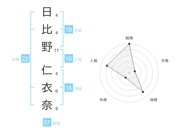 日比野 仁衣奈さんを姓名の画数から五運を鑑定