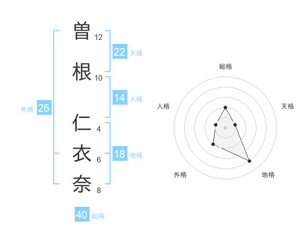 曽根 仁衣奈さんを姓名の画数から五運を鑑定