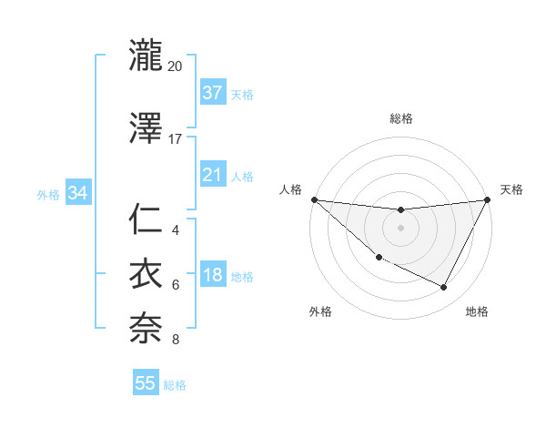 瀧澤 仁衣奈さんの天格は37画の5点!