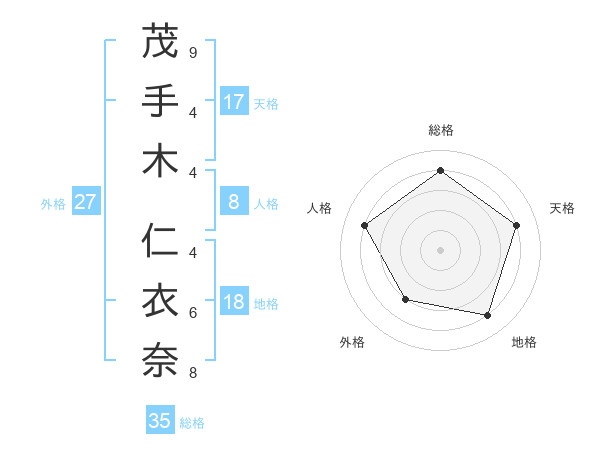 茂手木 仁衣奈さんの天格は17画の4点!