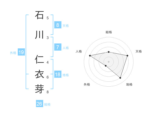 石川 仁衣芽さんを姓名の画数から五運を鑑定