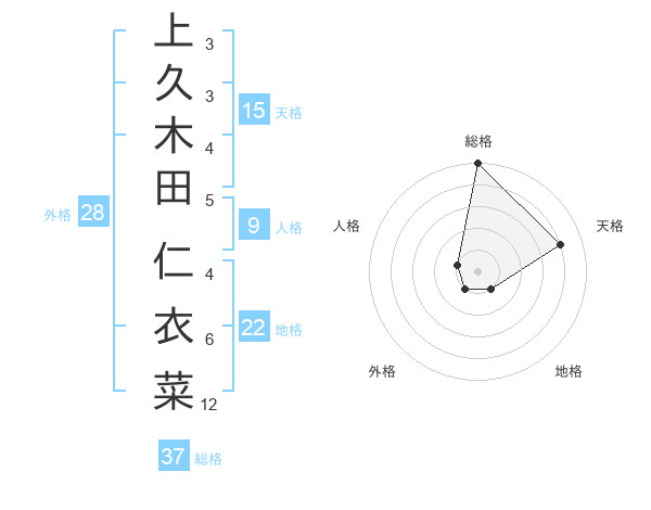 上久木田 仁衣菜さんを姓名の画数から五運を鑑定