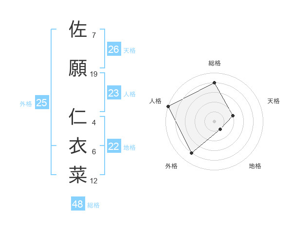 佐願 仁衣菜さんを姓名の画数から五運を鑑定