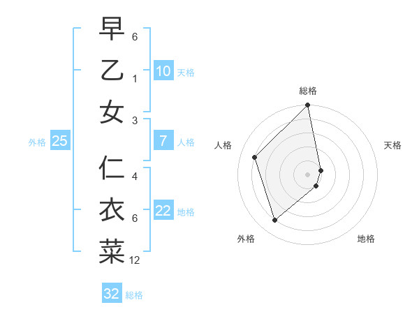 早乙女 仁衣菜さんを姓名の画数から五運を鑑定
