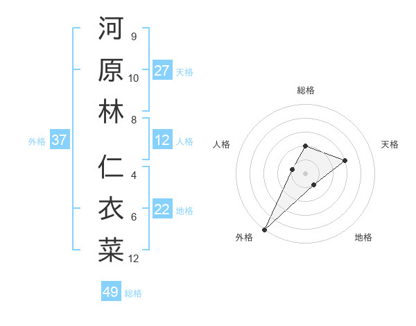 河原林 仁衣菜さんを姓名の画数から五運を鑑定