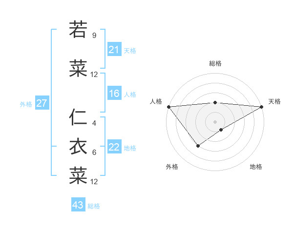 若菜 仁衣菜さんの天格は21画の5点!