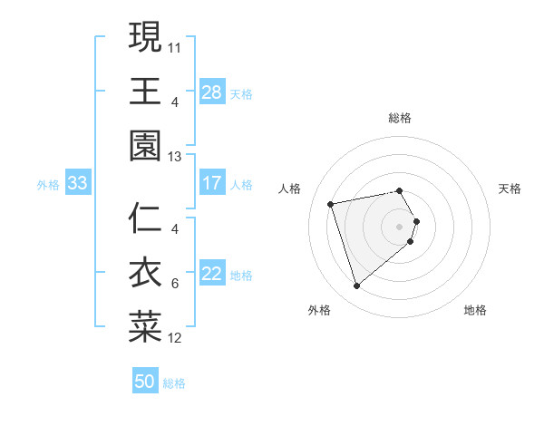 現王園 仁衣菜さんを姓名の画数から五運を鑑定