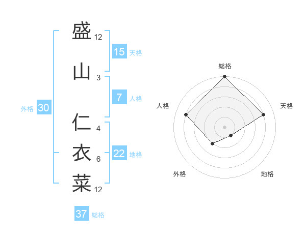 盛山 仁衣菜さんを姓名の画数から五運を鑑定