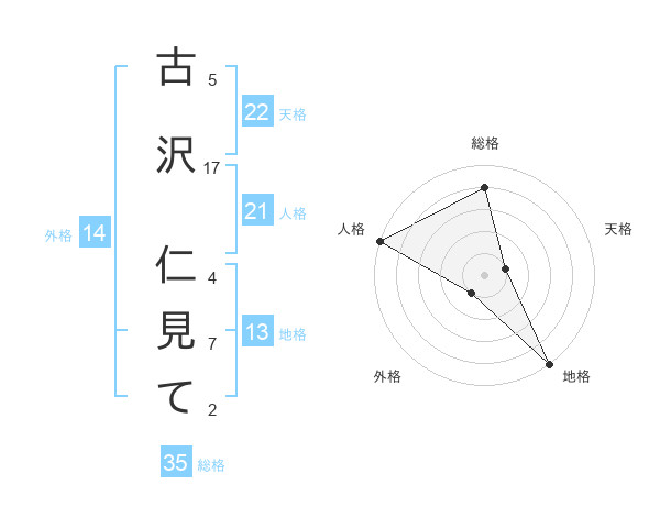 古沢 仁見てさんを姓名の画数から五運を鑑定