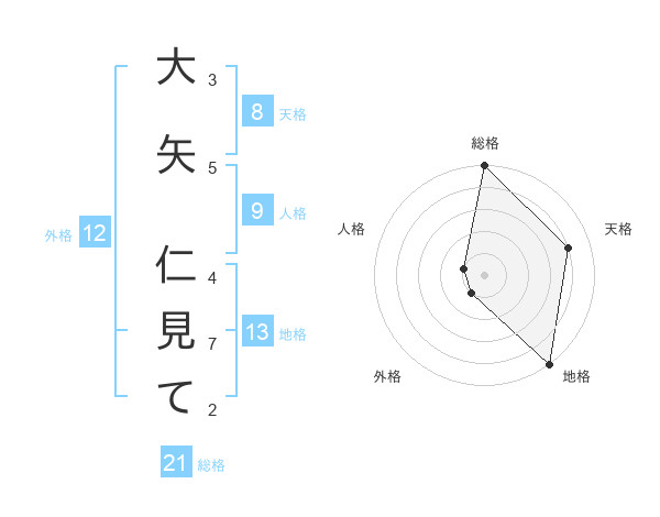 大矢 仁見てさんを姓名の画数から五運を鑑定