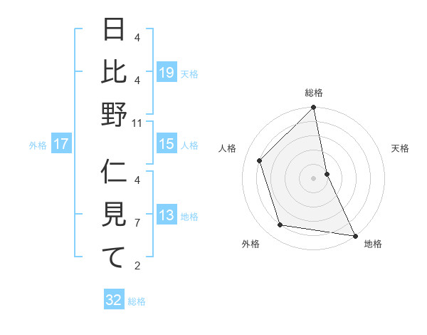 日比野 仁見てさんを姓名の画数から五運を鑑定