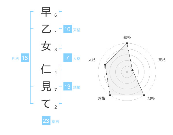 早乙女 仁見てさんを姓名の画数から五運を鑑定