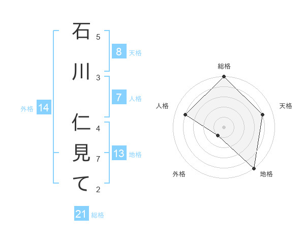 石川 仁見てさんを姓名の画数から五運を鑑定