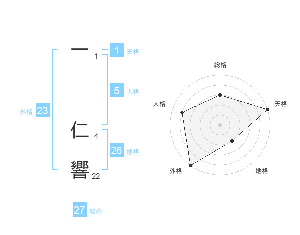 一 仁響さんの外格は23画の5点!