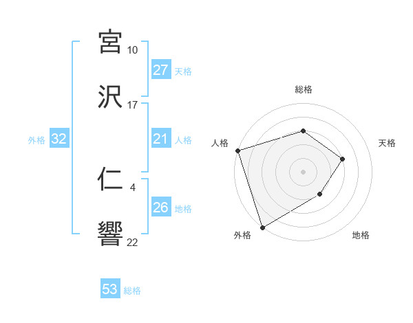 宮沢 仁響さんの総格は53画の3点!