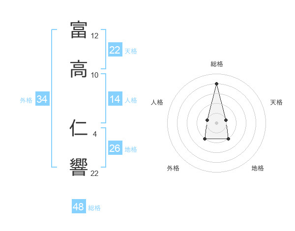 富高 仁響さんの総格は48画の4点!