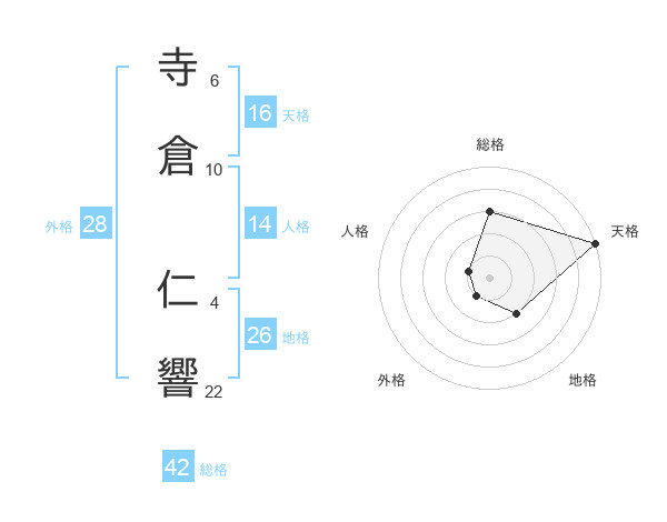 寺倉 仁響さんを姓名の画数から五運を鑑定