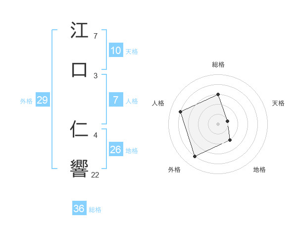 江口 仁響さんの外格は29画の4点!