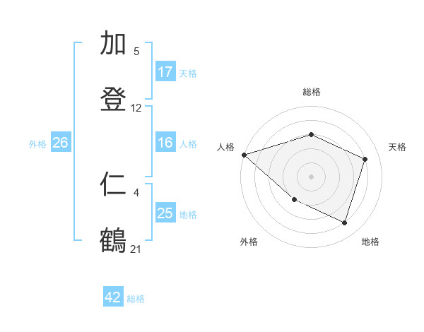 加登 仁鶴さんを姓名の画数から五運を鑑定