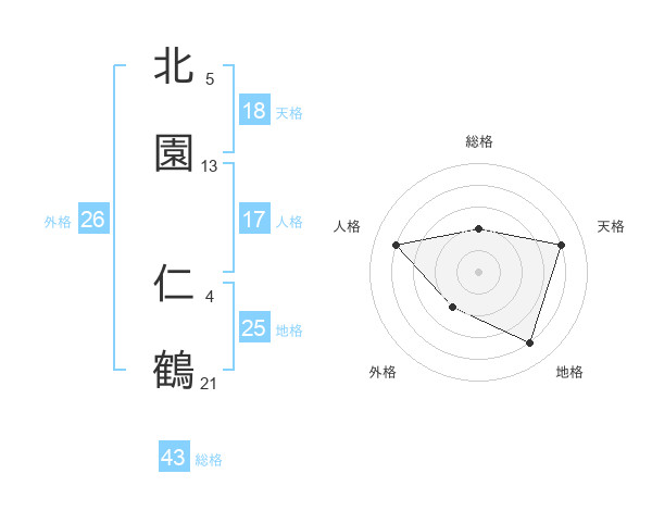 北園 仁鶴さんを姓名の画数から五運を鑑定