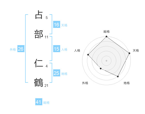 占部 仁鶴さんを姓名の画数から五運を鑑定