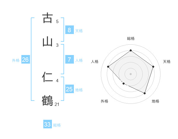 古山 仁鶴さんを姓名の画数から五運を鑑定