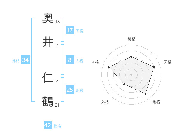奥井 仁鶴さんを姓名の画数から五運を鑑定