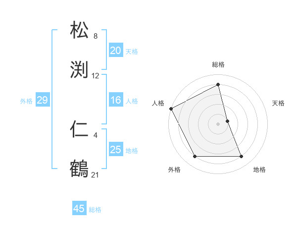 松渕 仁鶴さんを姓名の画数から五運を鑑定