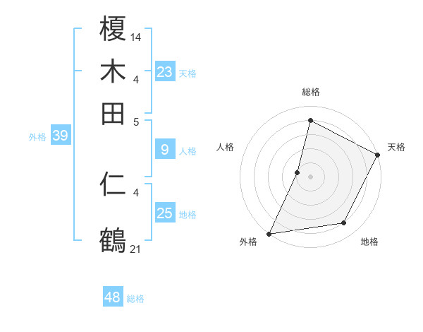 榎木田 仁鶴さんの外格は39画の5点!
