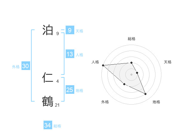 泊 仁鶴さんを姓名の画数から五運を鑑定